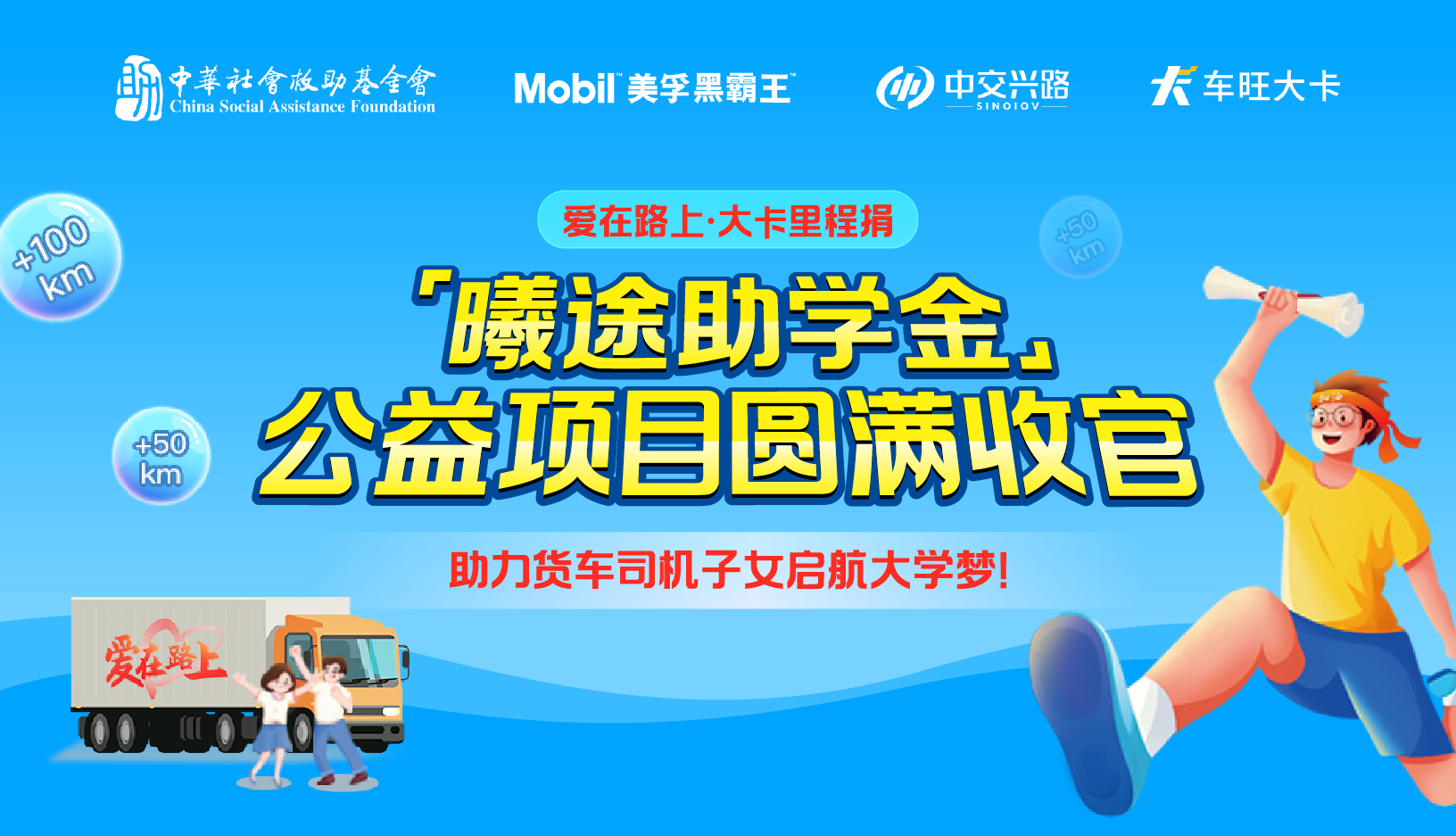 大卡里程捐,照亮货车司机家庭子女大学之路。